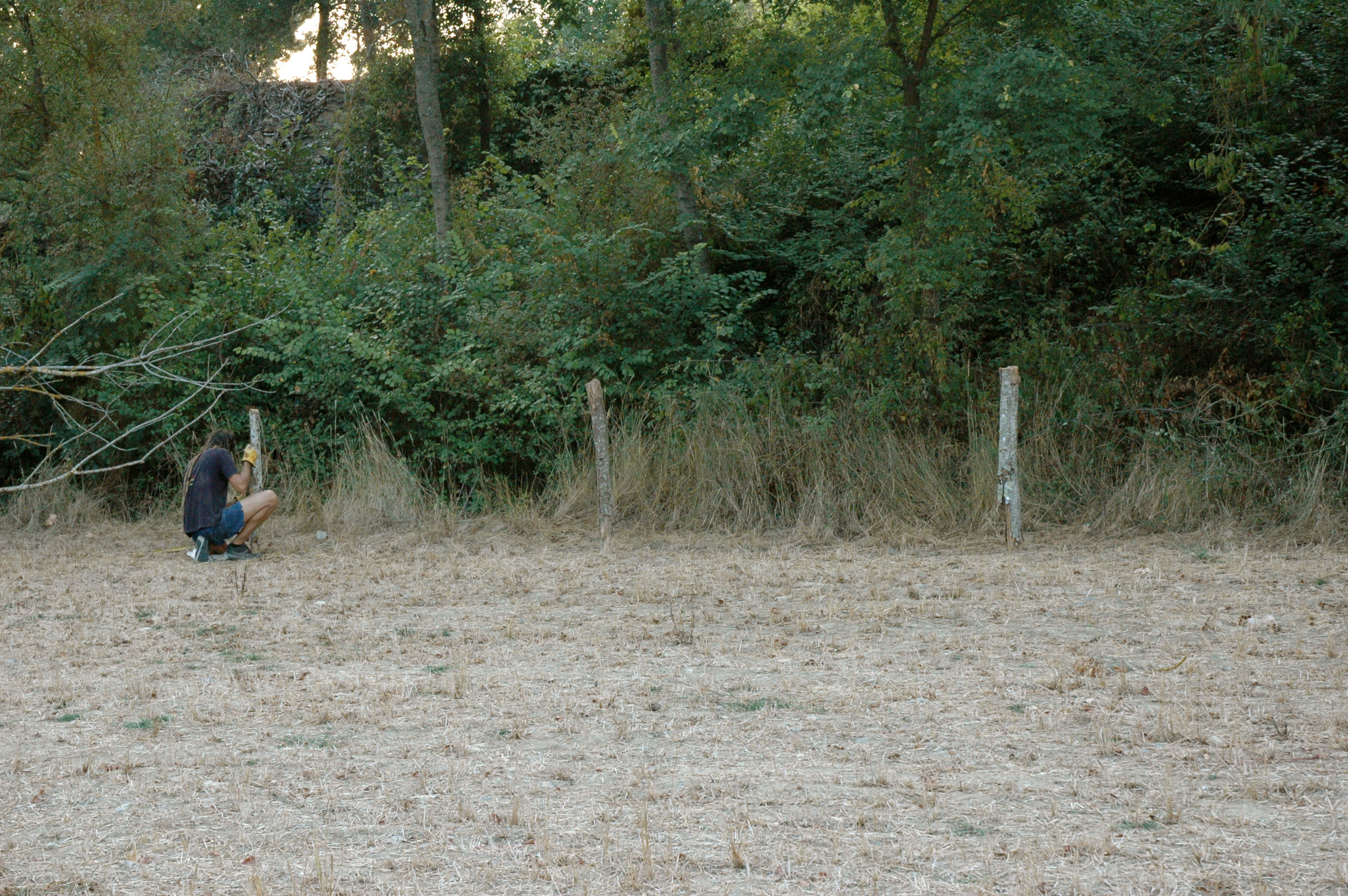 El següent pas era tancar tota la zona on nosaltres preteníem plantar per evitar que els senglars i les ovelles d’un ramat veí es mengessin la collita. Al estar situats al límit del parc natural del Montnegre-Corredor la fauna i flora local gaudeixen de bona salut. D’una banda això és beneficiós perquè partim d’un ecosistema basant equilibrat però hem de pagar aquest impost ecològic.
